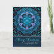 La carte de Noël Boho pour votre nièce présente un design bohème complexe avec des flocons de neige dans des teintes riches de bleu et turquoise sur un arrière - plan foncé avec un effet texture pour donner un peu un look "usé et patiné".