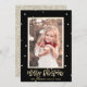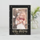 COULEUR ARRIÈRE - PLAN CHANGEABLE. Joyeux script de Noël Joyeux et moderne La carte à plat Holiday comprend une photo avec un cadre rectangle de parties scintillant en faux or sur un arrière - plan motif de neige blanche.