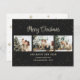 Elégantes cartes noires de Noël avec photo collage et chute de neige sur un arrière - plan noir. Personnalisez facilement cette carte noire de Noël avec vos images préférées, un nom de famille et un texte.