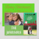 Joyeux Noël! Ce dessin présente Père Noël, son traîneau et des rennes qui s'envolent dans le ciel. Ci-dessous, Père Noël regarde avec des arbres rouges et un bonhomme de neige sur la scène. Le décor est un vert festif avec des flocons de neige délicats qui descendent. Le design fait honneur au coin supérieur droit, tandis que le coin inférieur opposé offre de l'espace pour votre nom de famille sur un fond vert. Le texte du nom de famille est dans "American Text", une police de caractères serif. Les coins supérieur gauche et inférieur droit offrent des spots à personnaliser avec vos photos de famille préférées à l'aide de notre outil. A l'intérieur, la carte permet un accueil personnalisé, avec une illustration du Père Noël et de son renne traîneau sous elle. Vous pouvez choisir d'utiliser notre salutation, qui dit : "Joyeux Noël ! Ayez une belle saison de Noël" stylisée dans une police Freehand Loose qui reproduit l'apparence de l'écriture de brosse. Nos images sont reproduites avec l'aimable autorisation de Photography © Storytree Studios, Stanford, CA.