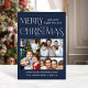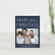 Elégante carte de voeux de vacances en bleu avec "Joyeux Noël" en typographie blanche vintage, "Bonne nouvelle année" et un accueil en typographie blanche moderne, votre photo et votre nom. Personnalisez votre message saisonnier à la famille et aux amis à l'intérieur.