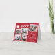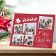 Carte pliée Festive rouge de vacances avec un collage photo de 5 images éparpillées dans des cadres blancs, une illustration blanche de rennes volant le traîneau à Père Noël, "Joyeux Noël" dans un script blanc élégant et votre nom dans une simple typographie blanche moderne. Customisez votre salutation à l'intérieur ou laissez vide pour les notes manuscrites.