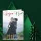 Élégante carte de vœux pliée Joyeux Noël avec une belle typographie cursive en rouge et vert. Cette moderne carte de Noël avec photo de famille française présente une belle écriture et votre nom en blanc sur l'image de vacances verticale.