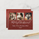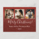 Joyeux script de Noël fantaisie 3 photo collage carte postale vacances sur un faux rouge arrière - plan parties scintillant étoilé. Ajoutez vos photos de famille préférées pour personnaliser. Ajoutez votre message personnel à l'envers de la carte.