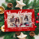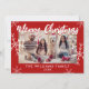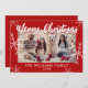 Photo de famille minimaliste moderne Joyeux Noël carte de vacances de Noël. Caractéristiques élégant script de calligraphie police Joyeux Noël et flocons de neige. Personnalisez votre nom de famille et votre année pour une carte de Noël personnalisée.