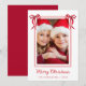 Simple carte de voeux de vacances avec votre photo présentée dans un cadre d'aquarelle rouge orné de coquettes en haut, "Joyeux Noël" dans un script rouge élégant et votre nom de famille et année en simple lettrage rouge.