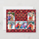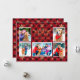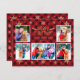 Personnalisez votre propre carte de vacances Joyeux Noël cinq photos avec un arrière - plan plaid rouge, des flocons de neige dorés, des feuilles d'arbres et de la typographie de l'or.