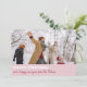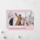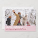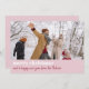 Carte de Noël personnalisée avec une photo large. Une bordure rose au bas de la carte de vacances avec joyeux noël écrit en lettres blanches croustillantes mais élégantes, et un accueil de vacances en écriture brosse rouge.