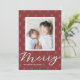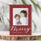La carte de Noël Sweet photo comporte une photo personnalisée bordée d'un simple cadre d'instantané blanc avec un motif arrière - plan fileté à ruban rose tendance. Un joli script blanc se démarque de l'arrière - plan rose des Fêtes. Moderne mais avec un clin d'oeil vintage, cette carte classique fera des amis et de la famille prêts pour fêter une saison festive !