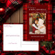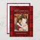 Enveloppez votre photo de vacances en famille chère dans ce motif traditionnel et classique rouge de Noël avec une bordure rouge foncé, un seul portrait modèle photo et des champs de texte modifiables. Le verso comporte des champs de texte supplémentaires, des éléments vides et une bordure plaid.
