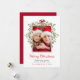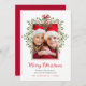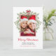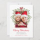 Elégante carte de voeux de vacances avec votre photo présentée dans un cadre aquarelle composé d'une végétation de saison mistletoe et d'un arc de coquette rouge avec des rubans, "Joyeux Noël" dans un script rouge élégant, et votre salutation, nom de famille et année en lettrage moderne simple.