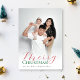 Célébrez la saison avec notre Joyeux Noël Rouge & Vert Script moderne Photo Carte de vacances! Cette carte de vacances élégante combine élégamment les tons rouge et vert classiques avec une police de caractères moderne qui ajoute une touche festive. Le recto de la carte présente votre photo de vacances préférée, ce qui en fait un souvenir personnel et mémorable. Pour une touche spéciale supplémentaire, le dos de la carte comprend une page blanche, vous permettant d'ajouter votre propre message personnalisé, des salutations chaleureuses ou même une mise à jour de famille. Parfait pour répandre des vacances à la joie de vos proches!