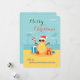 Fun Joyeux Noël Saison du Père Noël Happy Holiday une carte amusante à penser à la chaude plage de sable avec Sandy Claus dessus et des cadeaux.