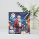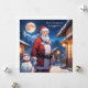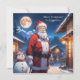 Carte de Noël personnalisée avec Santa Clause et un bonhomme de neige dans un village de Noël avec une couverture de neige.