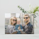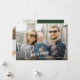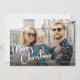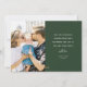 Envoyer des salutations de saison avec ce script moderne Lettrer la photo de Noël Carte. Design présente une image de votre choix avec une superposition foncée sur le fond avec le texte blanc 'Joyeux Noël, et un Joyeux Nouvel An, nom de famille et année. Au verso, vous pouvez ajouter une deuxième photo, personnaliser le message et les noms. L'arrière - plan vert festif peut être changé en n'importe quelle couleur.