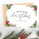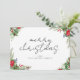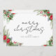 Joyeuse carte de vacances de Noël avec typographie écriture minimaliste et feuillage festif d'hiver.