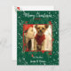 Joyeux Noël Snowy Wreath Carte de vacances de famille personnalisée. Classique rouge et vert. Le modèle est configuré pour vous permettre de personnaliser.