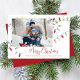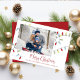 Ce design comprend des lumières à cordes de Noël mignonnes, joyeux photo de famille simple de Noël, typographie rouge festive classique,1 une image stylisée tendance, moderne élégante simple tendance, minimaliste décoration d'arbre, police de script de calligraphie moderne, chaîne de lumières de Noël fantaisiste, oeuvre de laura Lacina, un carte photo de Noël amusant