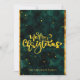 Green and Gold Joyeux Noël Elegant Script Carte de vacances. Effet numérique vintage et Faux Gold. Vous pouvez personnaliser le texte à l'arrière.