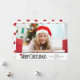 Souhaitez-leur "Joyeux Noël" avec ce carte photo de voeux de Noël personnalisé avec des chapeaux de Père Noël fantaisistes à l'avant et à l'arrière ! Fond blanc. Facile à customiser avec votre propre photo et texte.