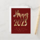 Joyeux Nouvel An 2023 Élégant Rouge et Or Script, Faux Gold Lettering sur Arrière - plan rouge, Carte moderne Nouvel An, Carte postale
