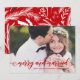 Répandez la joie des vacances avec cette carte de mariage élégante. Cette carte à plat présente une calligraphie moderne rouge citation "joyeuse et mariée" avec des accents floraux vacances arrière - plan. La carte de vacances idéale pour les jeunes mariés. Une version carte postale et carte pliée sont disponibles.