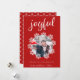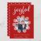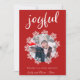 Joyeuse carte de vacances en cadre de flocon de neige à Script rouge. Design de vacances hivernales avec une photo entourée de beaux flocons blancs. L'arrière - plan est rouge avec un motif de flocon de neige. Ajoutez votre photo et customisez le message et les noms.