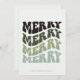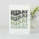 Merry Merry Merry Merry Christmas Card : un design rétro, avec une typographie vintage ondulée et une palette verte muette.