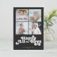 Ces cartes de voeux plates de 5" x 7" présentent un design minimaliste avec le message "Happy All the Days", en blanc sur noir avec des espaces réservés pour quatre (4) de vos photos préférées, nom(s) de famille et année.