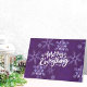 Purple Snowflake Business Folded Holiday Card, lettré avec Merry Tout en calligraphie blanche. Le modèle est mis en place pour que vous customisiez le libellé à l'intérieur, quelle que soit votre volonté, pour inclure les salutations de saison, nom(s) et/ou nom de la société et toute information supplémentaire., comme vos heures d'ouverture de noël, site Web etc.