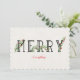Jolie carte de vœux de vacances avec un fond texturé aspect lin. Un lettrage noir ouvert épelle "MERRY" en grandes lettres capitales et comporte de délicates verdures de Noël et des baies de houx entrelacées. En dessous, "Everything" est écrit en élégante écriture rouge délicate. Le verso de la carte indique "Wishing you much joy this holiday season" en écriture rouge. Une branche de houx de Noël avec des baies rouges sépare le message de votre personnalisation, qui comprend le nom de famille et les prénoms de chaque membre de la famille. Si vous avez besoin d'aide pour la personnalisation, vous pouvez soit m'envoyer un message ici, soit m'envoyer un courriel à digiscrapthat@comcast.net. Je serais ravie de vous aider à créer la carte de vœux ou le cadeau de Noël idéal pour vos amis et votre famille.