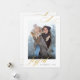 Cette carte de Noël simple et élégante offre un cadre photo vertical et est accentuée par le mot "Joyeux". Le texte est très élégant avec des tourbillons et les mêmes tourbillons sont répétés en haut de la carte. L'arrière-plan propose du texte personnalisé pour ajouter un message personnel.