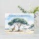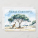 Un kangourou de Noël et un Emu assis sous un arbre à tambours décoré de baubles. Accueil Joyeux Noël à l'avant Joyeux Noël et Bonne Année à l'intérieur