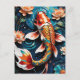 Cartes Pour Fêtes Annuelles Koi vibrant et de belles fleurs scène aquatique