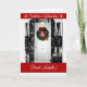 Cette belle photo en noir et blanc teinté a une couronne sur la porte d'entrée invitant la saison à célébrer avec une légère chute de neige. Une carte de Noël en allemand qui dit : "Joyeux Noël et Bonne Année" avec un verset intérieur qui se traduit par : "Santé, bonheur, et beaucoup de succès dans le Nouvel An !".