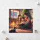 Carte de Noël personnalisée avec une famille lisant un livre devant leur chambre décorée, avec cheminée et sapin de Noël.