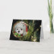 Arbre de Noël avec ornement reflétant une jolie image de Snowdrop le maltais dans un chapeau de Père Noël.