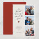 c'est la période la plus merveilleuse de l'année !, carte de vacances moderne minimaliste à 3 photos. Caractéristiques, fonds beige doux et rouge rustique avec une typographie noire élégante et détail de nœud rouge festif.