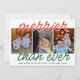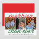 Diffusez encore plus de bonne humeur cette saison avec la carte de vœux « Merrier Than Ever », conçue dans des teintes classiques de rouge et de vert pour un look de Noël intemporel. Cette carte magnifiquement conçue comporte trois emplacements pour photos, parfaits pour mettre en valeur vos moments de famille préférés, vos enfants souriants ou même vos amis à quatre pattes !