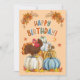 Quel joli design dans les couleurs de automne rétro! Cette carte serait parfaite pour quelqu'un qui a un anniversaire à l'automne/l'Action de grâces. Vous pouvez customiser le texte pour créer une carte d'invitation.