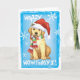 Envoyez les salutations de Noël avec cette carte d'un chiot jaune mignon de labrador retriever utilisant un casquette de Père Noël et une écharpe rayée parmi des flocons de neige et les mots, Howlidays heureux ! Grand pour la famille et les amis Laboratoire-affectueux jaunes. Ayez un Howliday heureux !
