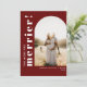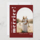 Une carte d'annonce de grossesse festive et typographique avec votre photo de grossesse préférée dans une forme d'arche et "plus on est de fous, plus on rit ! " en police blanche sur fond rouge festif. Vous pouvez ajouter un message facultatif au verso.