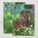 Si vous cherchez quelque chose d'original et d'unique, cette carte est un mélange de peinture numérique et à l'aquarelle représentant un vrai lapin des deux côtés. Le lapin se cache sous une branche d'arbre dans un beau champ de marguerites au coucher du soleil. Le dos présente le même lapin avec un poulet. Mon amour pour les animaux m'a inspiré. Profitez d'un art unique.