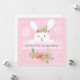 Blanc, "Snow Bunny vous souhaite de joyeuses fêtes !" sur une bannière rose. Aquarelle, fleurs roses et dorées de poinsettia de Noël et de houx sont portées sur la tête du lapin et en bouquet floral en dessous. Fond à motif harlequin rose avec deux flocons de neige blancs.