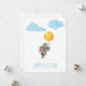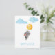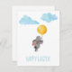 Lapin mignon à l'aquarelle avec ballon, nuages carte de vœux de vacances de Pâques.