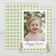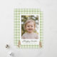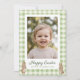 Célébrez Pâques avec une touche douce et personnelle grâce à cette carte de vœux photo Joyeuses Pâques, qui présente un design à carreaux à l'aquarelle vert clair et des accents de lapin bébé adorables. La couverture comprend un grand cadre photo pour votre image préférée, et le message "Joyeuses Pâques" ainsi que la ligne de l'expéditeur sont personnalisables, ce qui en fait une façon charmante d'envoyer un message de Pâques personnalisé à la famille et aux amis.