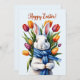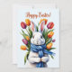 Cartes Pour Fêtes Annuelles Lapin de Pâques heureux et fleurs de tulipes