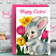 Cartes Pour Fêtes Annuelles Lapin En Fleurs Joyeux Pâques Personnalisé Retro