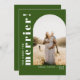 Une carte d'annonce de grossesse festive et typographique avec votre photo de grossesse préférée en forme d'arch et "plus on est de fous, plus on rit ! " en police blanche sur fond vert. Vous pouvez ajouter un message facultatif au verso.