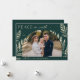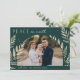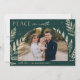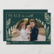 Un design chic et élégant de carte de vacances avec une seule photo horizontale ou paysagère dans une disposition unique voûtée, agrémentée d'un feuillage botanique finement détaillé. "Paix sur Terre" apparaît en haut à gauche, avec votre nom de famille en bas. Un choix raffiné d'inspiration nature pour vos voeux de Noël 2021.